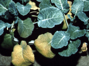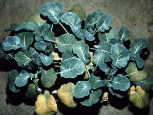• Chlorosis (yellowing) of the leaves starting from older ones due to the declining chlorophyll.